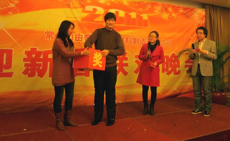 晚会在王舟浩董事长热情洋溢的新春致辞中拉开帷幕,他代表公司董事会及公司领导向广大员工在过去一年中的辛勤工作和为公司发展所做出的努力表示衷心的感谢。在对公司2010年工作进行回顾之后,董事长对公司全体员工给予了新的希望,他号召大家:在新的一年里,心往一处想,劲往一处使,坚定信心面对机遇,振奋精神迎接挑战,为创造公司和员工共有的美好未来而努力奋斗!