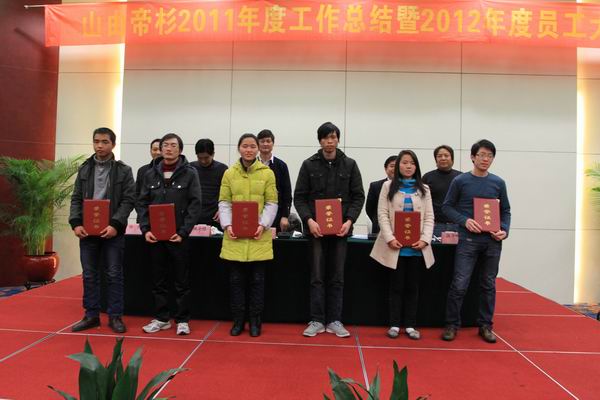 1月16日,常州山由帝杉防护材料制造有限公司2011年度总结暨2012年度员工大会在明都国际会议中心召开。公司总经理谭建岗向全体员工报告了2011年各项工作,安排了2012年重点工作任务;公司董事长王舟浩对全体员工的辛勤工作进行了充分肯定并对新的一年给予了希望。会上表彰了公司2011年度先进集体和^员工,公司总经理与各部门签署了2012年度安全生产责任状。当晚,公司举行了新年会餐及联欢活动,员工自编自演的舞蹈、小品、独唱、魔术等文艺节目令联欢活动高潮迭起,全体员工在欢乐祥和的氛围中喜迎新春佳节。
