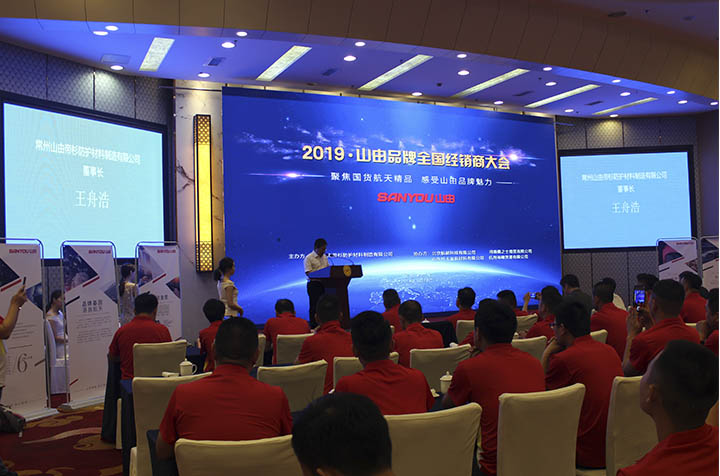 2019年5月28-29日,以“聚焦国货航天精品感受山由品牌魅力”为主题的2019•SANYOU山由品牌全国经销商大会在美丽的常州西太湖畔——明都国际会议中心成功隆重召开。常州山由帝杉防护材料制造有限公司(简称:山由帝杉)高层领导、控股股东中国航天领导、战略合作伙伴中国长城工业集团领导、行业协会领导、媒体代表与来自全国各地的经销商伙伴近300人齐聚常州,共襄山由品牌发展盛事。