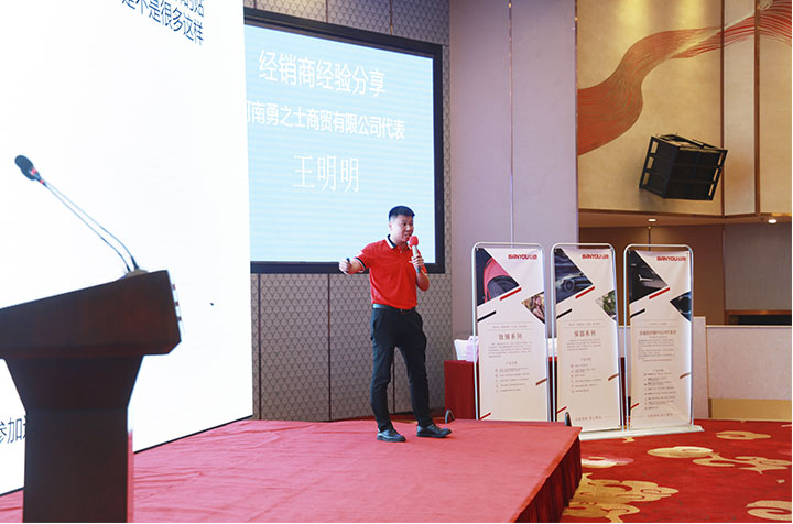 会上,山由帝杉市场部部长李斌详细讲解了“SANYOU山由”品牌、企业文化、核心产品系列、营销模式和品牌传播,吹响了山由品牌的冲锋号,亮出了走品牌发展的坚定决心,让在座的经销商们激动不已,喜笑颜开。