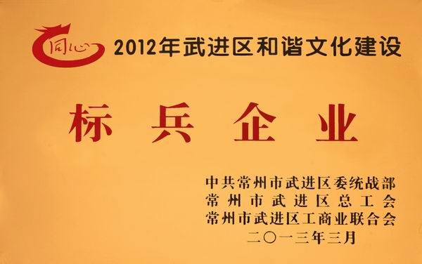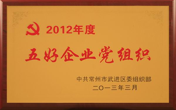 近日,公司相继获得2012年度武进区“和谐文化建设标兵企业”、“五好企业党组织”荣誉称号并受到表彰。