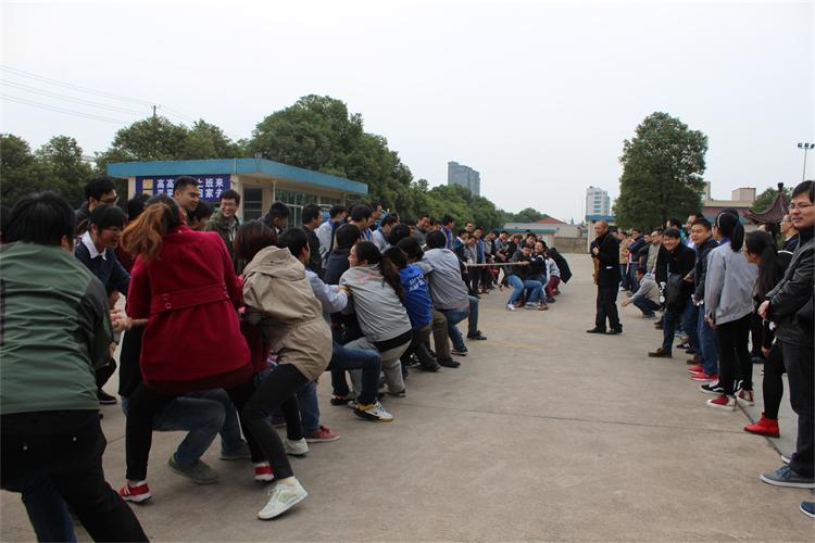 本次比赛以个人抽签的方式随机组队,每队由13名男队员和3名女队员组成,共有8支队伍参加比赛,尽管队员之间不是^熟悉,但是为了集体的荣誉,大家依然群情激昂,信心满满。他们抓牢绳子,咬紧牙关,为了共同的目标,心往一处想,劲往一处使。没有参赛的员工在场边不停的呐喊,加油助威。随着比赛的进行,场边不时回荡着“加油、加油”的呼喊声和胜利的欢呼声。