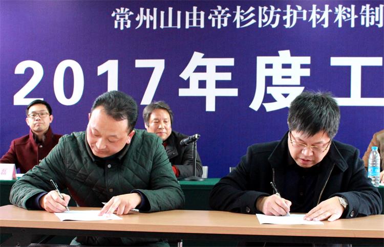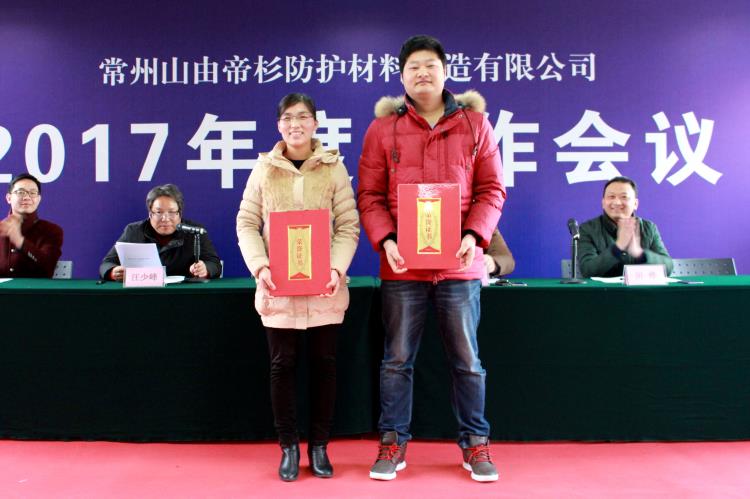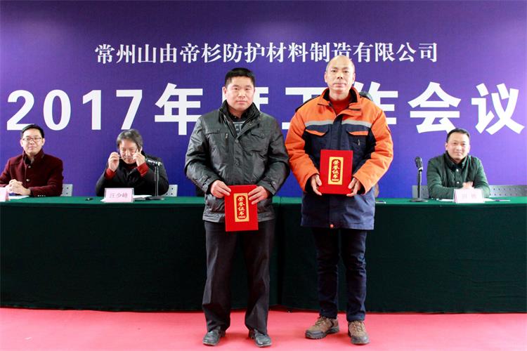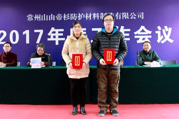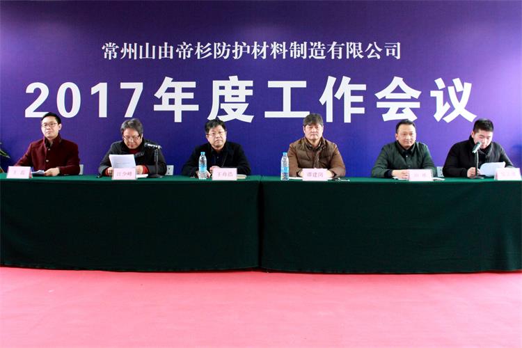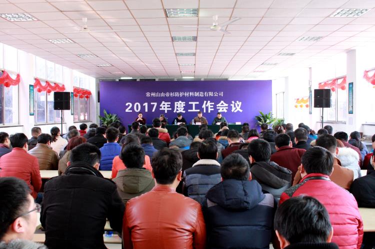 1月22日,常州山由帝杉防护材料制造有限公司召开2017年度工作会议,回顾总结2016年度工作情况,安排部署2017年度各项任务,公司全体员工参加了大会。