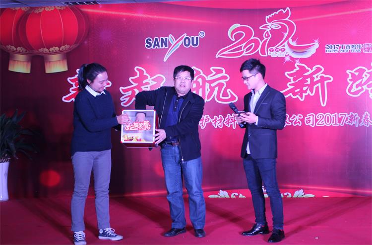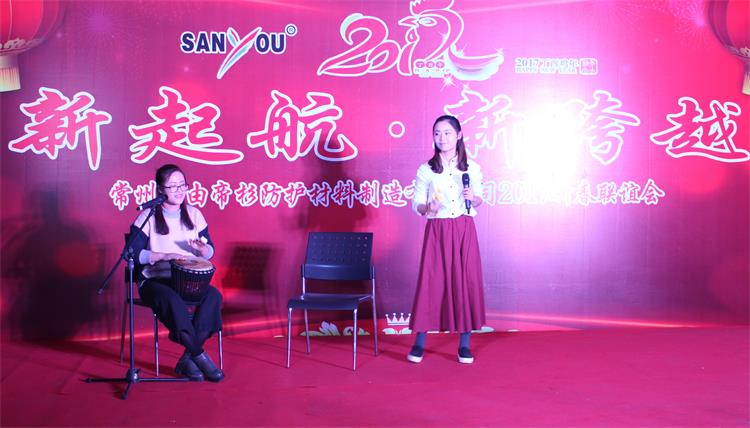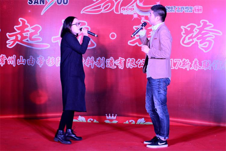 1月22日晚上,公司组织了以“新起航、新跨越”为主题的2017年新春联谊会,全体员工欢聚一堂,在轻松愉悦、和谐热烈的氛围中享受辛勤劳动带来的幸福成果,憧憬山由帝杉的美好未来。(综合管理部)
