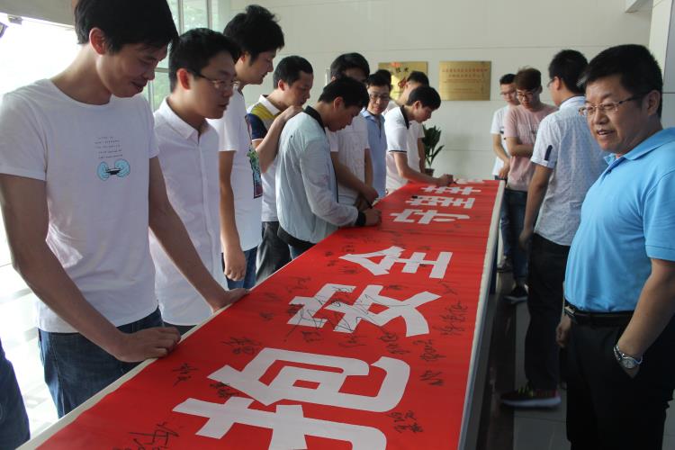 升旗仪式结束后,公司全体员工在“拥抱安全、守望幸福”的横幅上进行了安全承诺签名。(综合管理部)