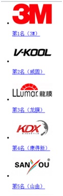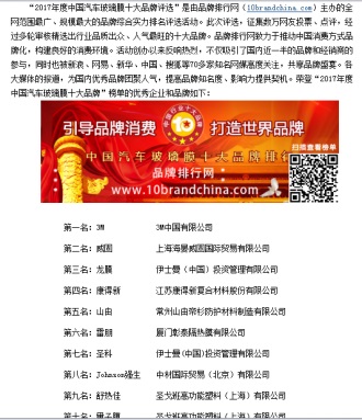 荣登“2017年度中国汽车玻璃膜十大品牌”