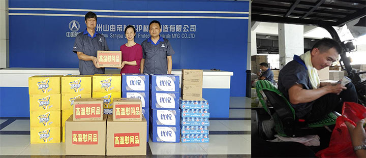 自从7月17日入伏以来,常州地区持续高温,为了顺利完成生产任务,公司员工冒着酷暑,依旧坚守工作岗位,在此期间,园区管委会、总工会和公司工会分别开展了高温慰问,给一线员工带去清凉。